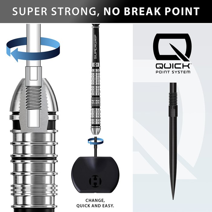 Harrows Supergrip Tapered Quick Point 90% dartpijlen worden standaard geleverd met: 3 Harrows Carbon Shafts, 3 Harrows Flights