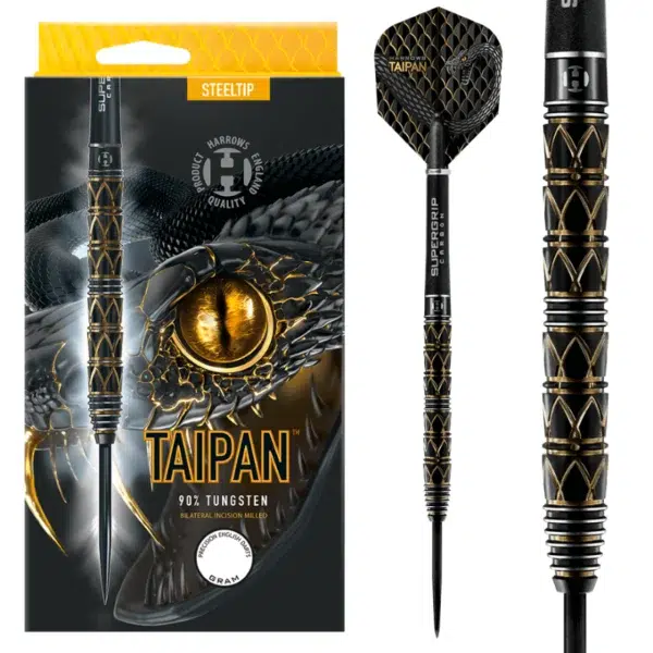 De Harrows Taipan 90% is een slanke pijl met goede grip.