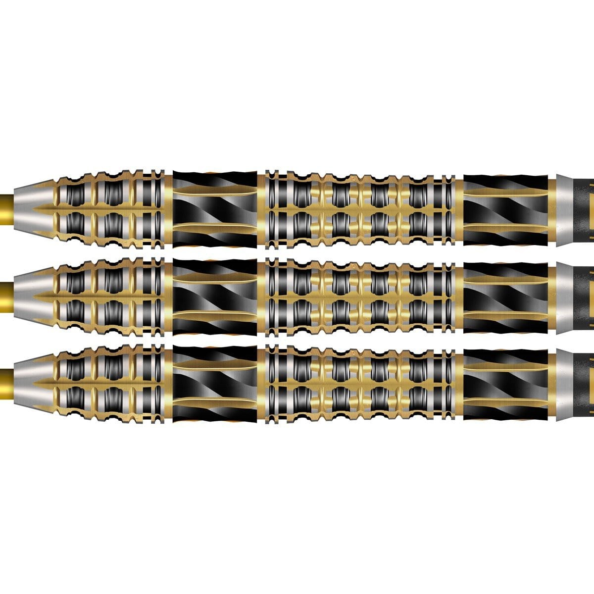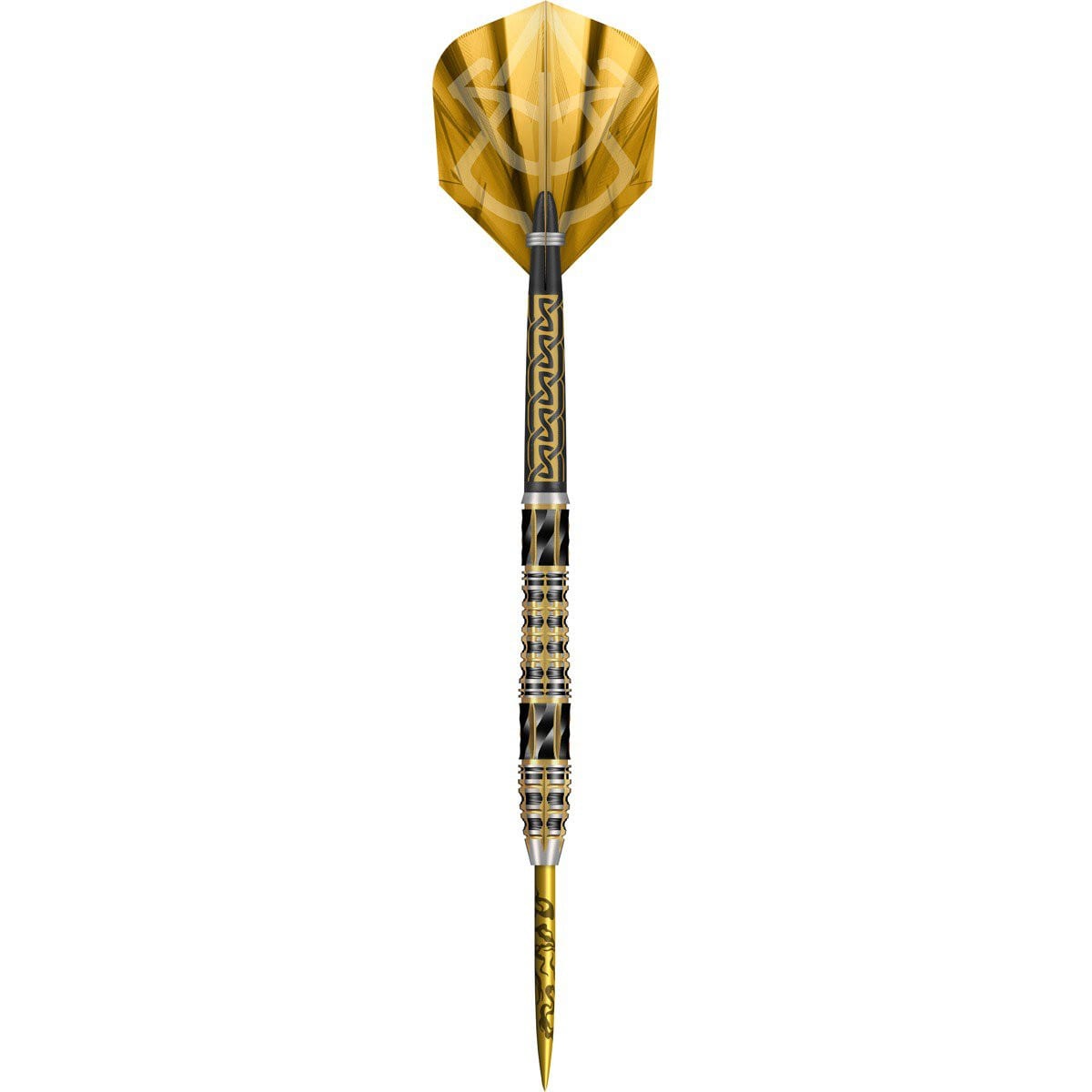 De barrel is voorzien van een mooie en nauwkeurig gefreesde milled grip, gecombineerd met ringed grip, waardoor je profiteert van een uitstekende controle en een consistent gevoel bij elke worp. De combinatie van goud-, zilver- en zwarte accenten geeft de pijl een luxe en opvallende uitstraling.