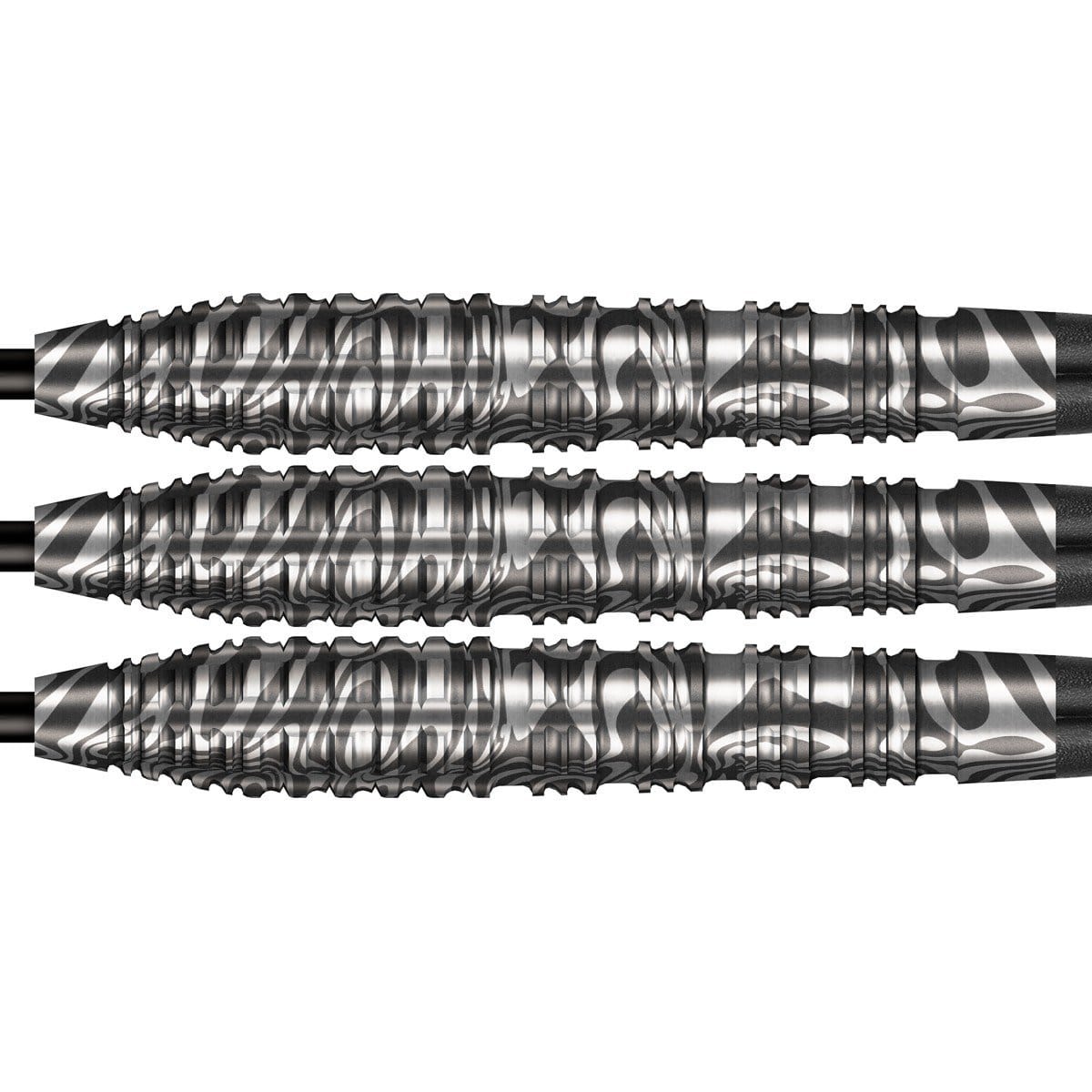 De barrel combineert milled grip en ringed grip, wat zorgt voor een goede mix van controle en comfort tijdens het gooien. De grijze accenten geven de pijl daarnaast een moderne en stijlvolle uitstraling.