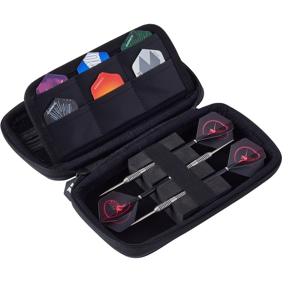 De Unicorn Ultra Case Black Small is een unieke en compacte dartkoffer. Deze Unicorn dart case heeft plaats voor 1 set darts, met daarbij ruimte voor 6 sets flights, 3 sets shafts en nog een handige ruimte met rits voor andere kleine darts accessoires.