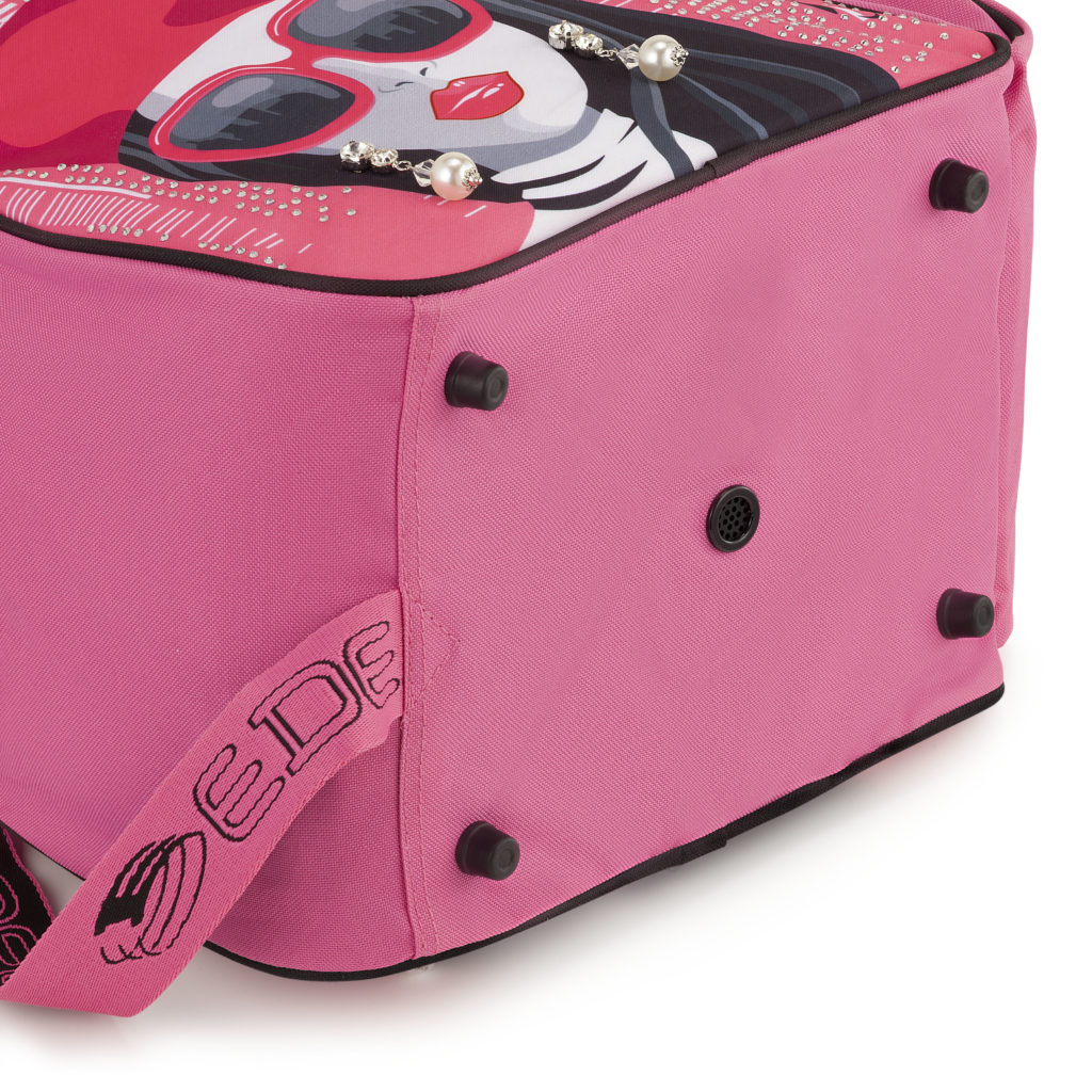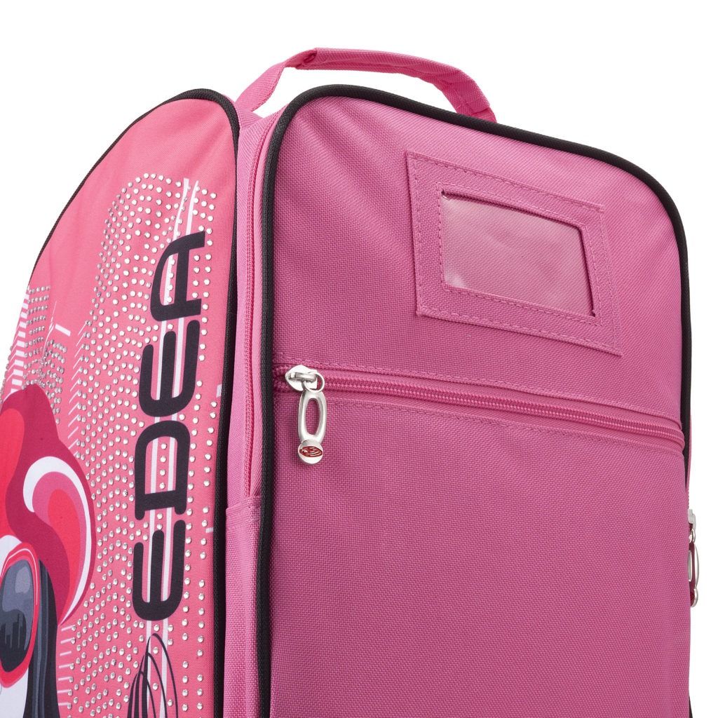 De Edea Signorina skatebag is een mooie, leuke, vrolijke en praktische schaatstas en heeft een zachtroze ontwerp met een skyline van meer dan 3000 kristallen en een set kristallen oorbellen, waardoor het de perfecte keuze is voor wie in stijl wil schitteren.