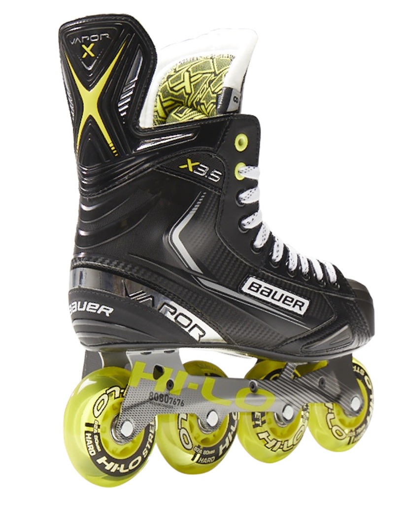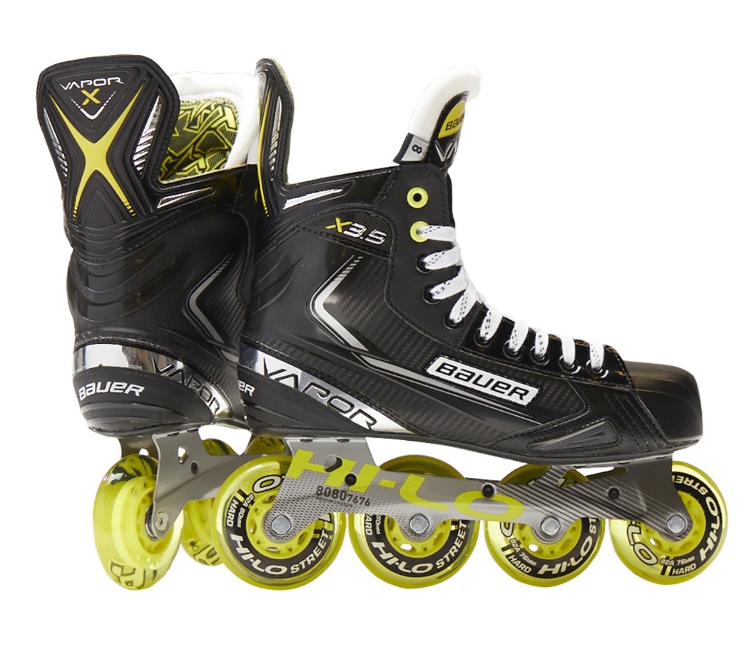 De Bauer Vapor X3.5 inline hockey skates is een ideale skate voor spelers die op zoek zijn naar een stabiele en betrouwbare skate ook voor buitengebruik. Met de HI-LO Street-wielen op het stevige Hi-LO-chassis zijn ze prima te gebruiken ook op ruwere oppervlakken en asfalt oppervlakken.