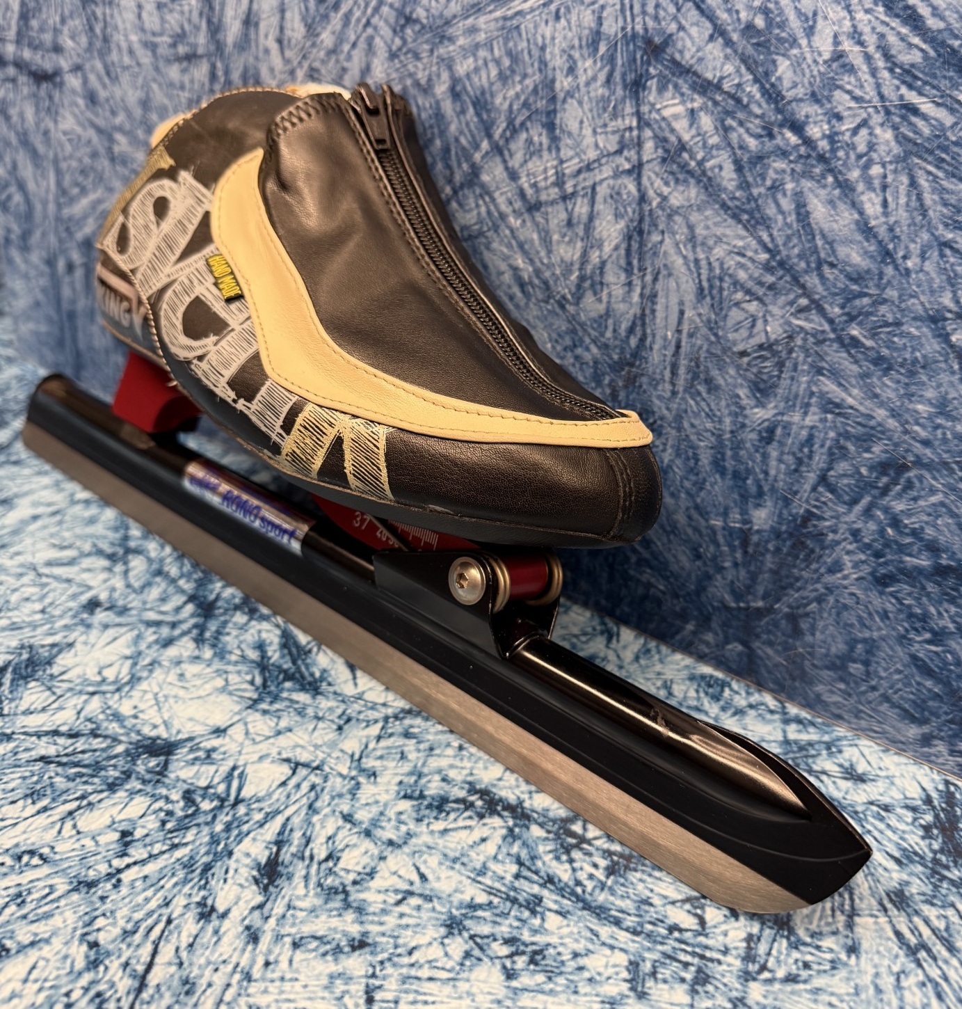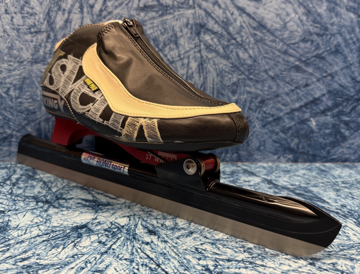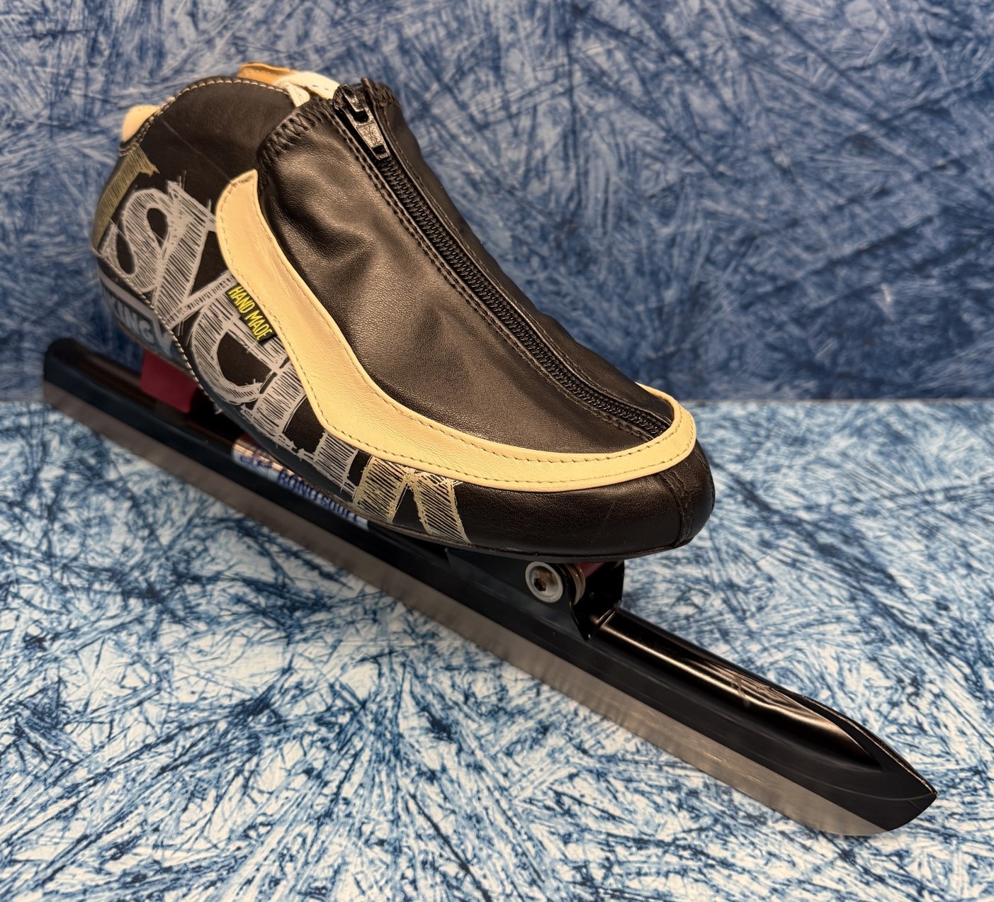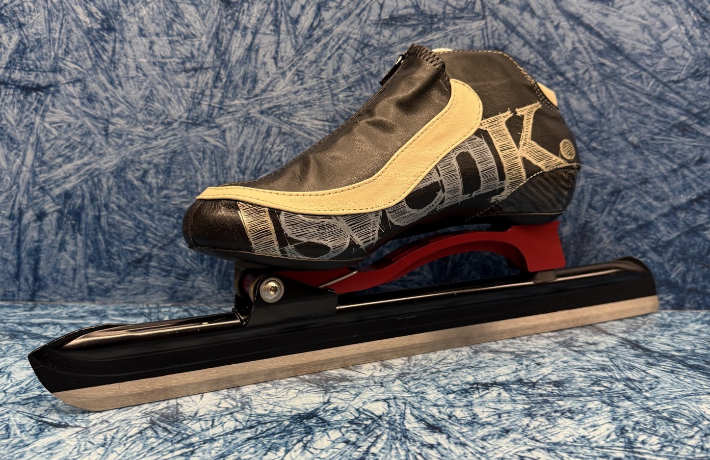 De schoen heeft een thermoplastische kuip. De zool heeft de mogelijkheid voor torsie, een hak die versterkt is met carbon en een hoge contrefort voor extra steun rondom de enkels. Aan de buitenzijde is de schoen voorzien van A-kwaliteit zwart natuurleer waarop door middel van sublimatie het sVenK logo is gedrukt. Voor een mooi contrast zijn diverse stiksels in de kleur van het logo uitgevoerd. De veters worden met een elastische kap afgedekt. De voering is gemaakt van glad kalfsleer in de kleur beige.